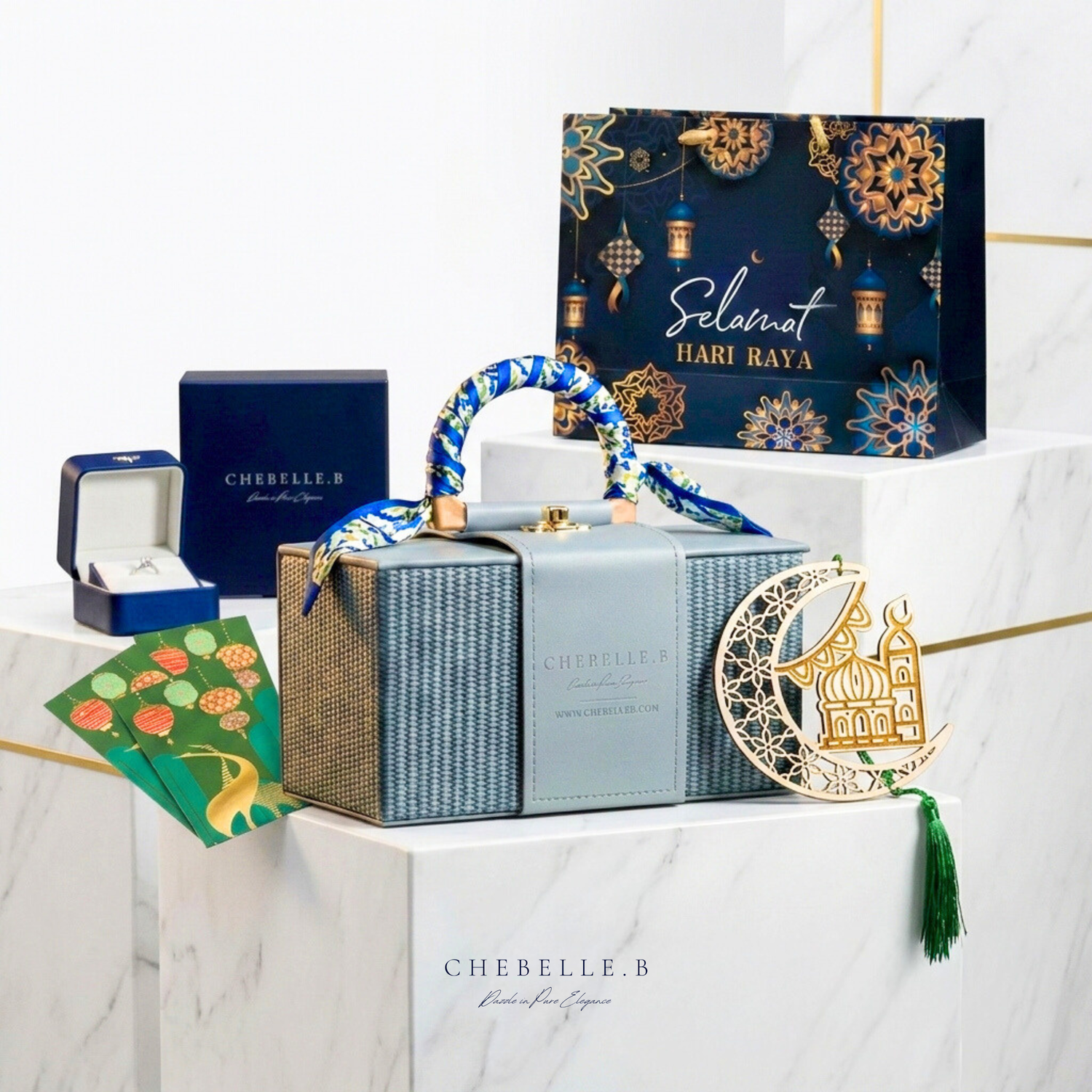 With every purchase, you will receive our Limited Edition Ribbon Gift Box, LED Jewelry Box, Wooden Crescent Ornament, Sampul Raya, Greetings Card, Silver Polishing Cloth. While Stock Last. No minimum spend required. Free Shipping on All Orders in Malaysia.