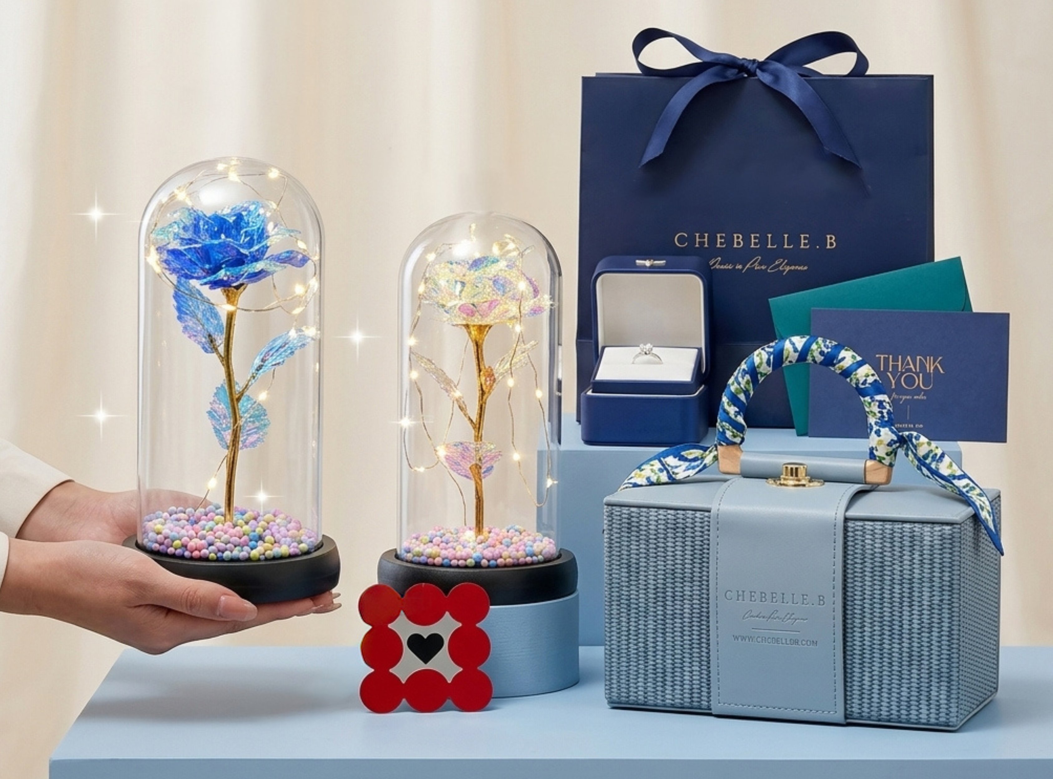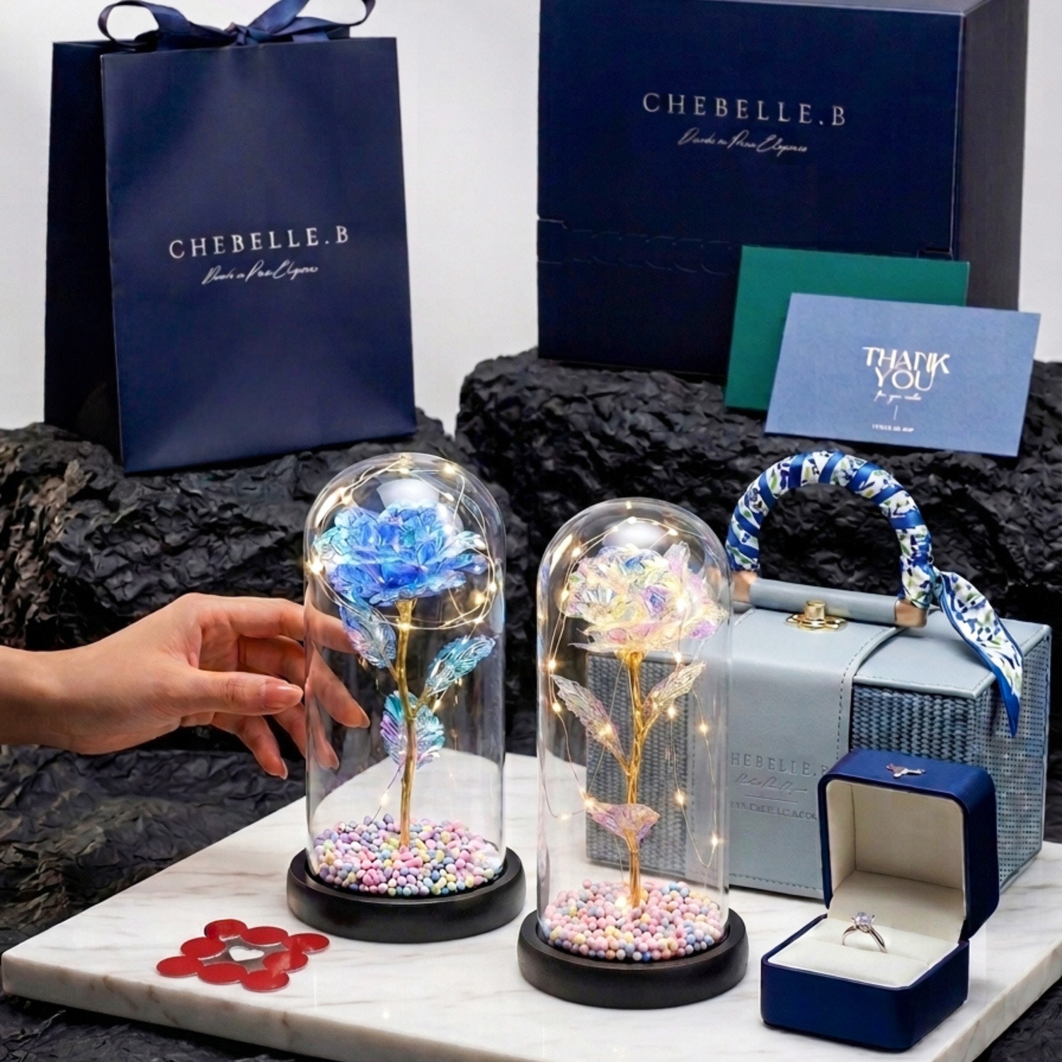 Spend over RM 650 to receive our signature Chebelle.B artisan gift box, complete with a Premium Preserved Rose in a glass dome that stays in bloom forever.