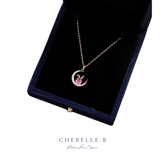 S925 Sterling Silver 1-Carat Pink Moissanite Moon Rabbit Pendant NecklaceRegular price RM1,199.00 MYRRegular priceUnit price / per-