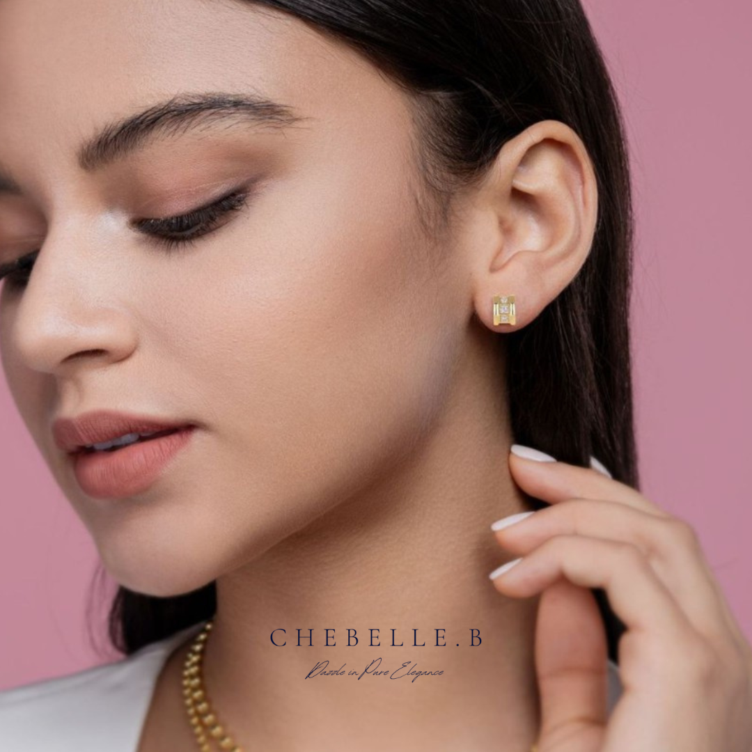 The Moissanite Accent Earrings feature a sophisticated design crafted from high-quality S925 sterling silver and plated with luxurious 18K gold. These earrings are adorned with brilliant Moissanite stones, known for their exceptional clarity and diamond-like brilliance.