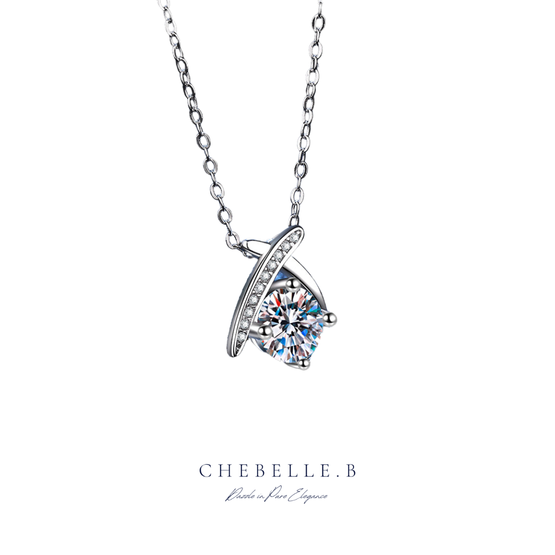 The Crossing Elegance 1-Carat Moissanite Necklace in 925 Sterling Silver exudes simple yet sophisticated charm. Featuring a brilliant 1-carat Moissanite stone, this pendant showcases a sleek, crossed design that embodies both modern minimalism and timeless elegance.