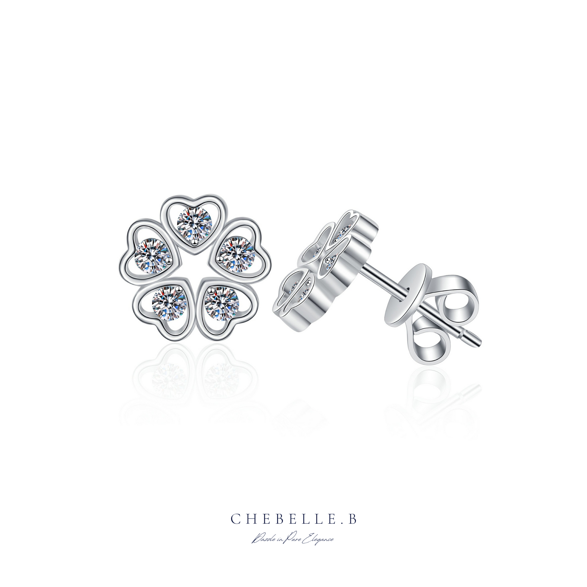 Each earring showcases a 0.3-carat D-color, FL (Flawless) Moissanite, masterfully cut to deliver exceptional brilliance. The heart-petal silhouette evokes sweetness and grace, while the premium S925 sterling silver setting ensures durability and comfort for everyday wear.