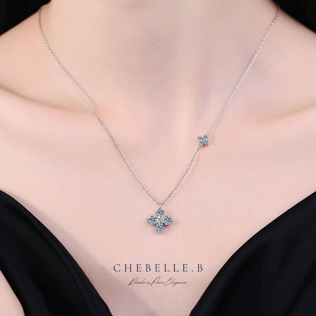 The 1.2-Carat Moissanite Four-Leaf Clover Necklace combines the radiant brilliance of a 1.2-carat Moissanite gemstone with the symbolism of the four-leaf clover, known for bringing good luck and fortune. Set in high-quality S925 sterling silver, this necklace features a delicate design that captures both elegance and meaningful charm.