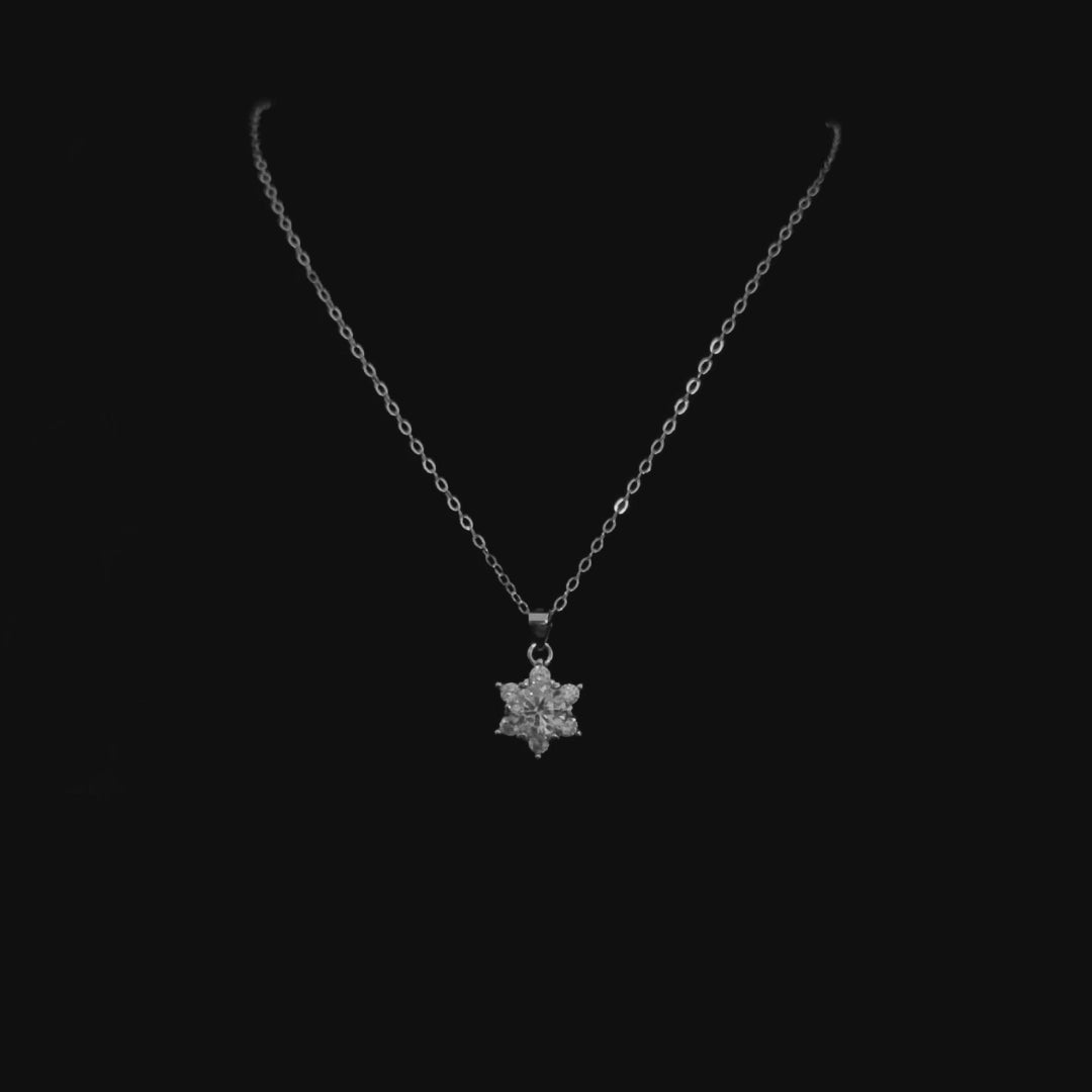 The six-sided hexagonal shape of the pendant enhances the intricate snowflake pattern, giving the necklace a sophisticated and celestial appeal. Perfect for adding a touch of winter elegance to any outfit, this necklace is ideal for both everyday wear and special occasions.