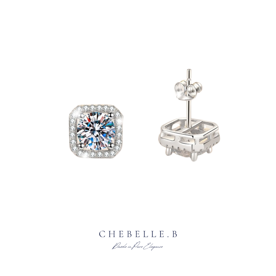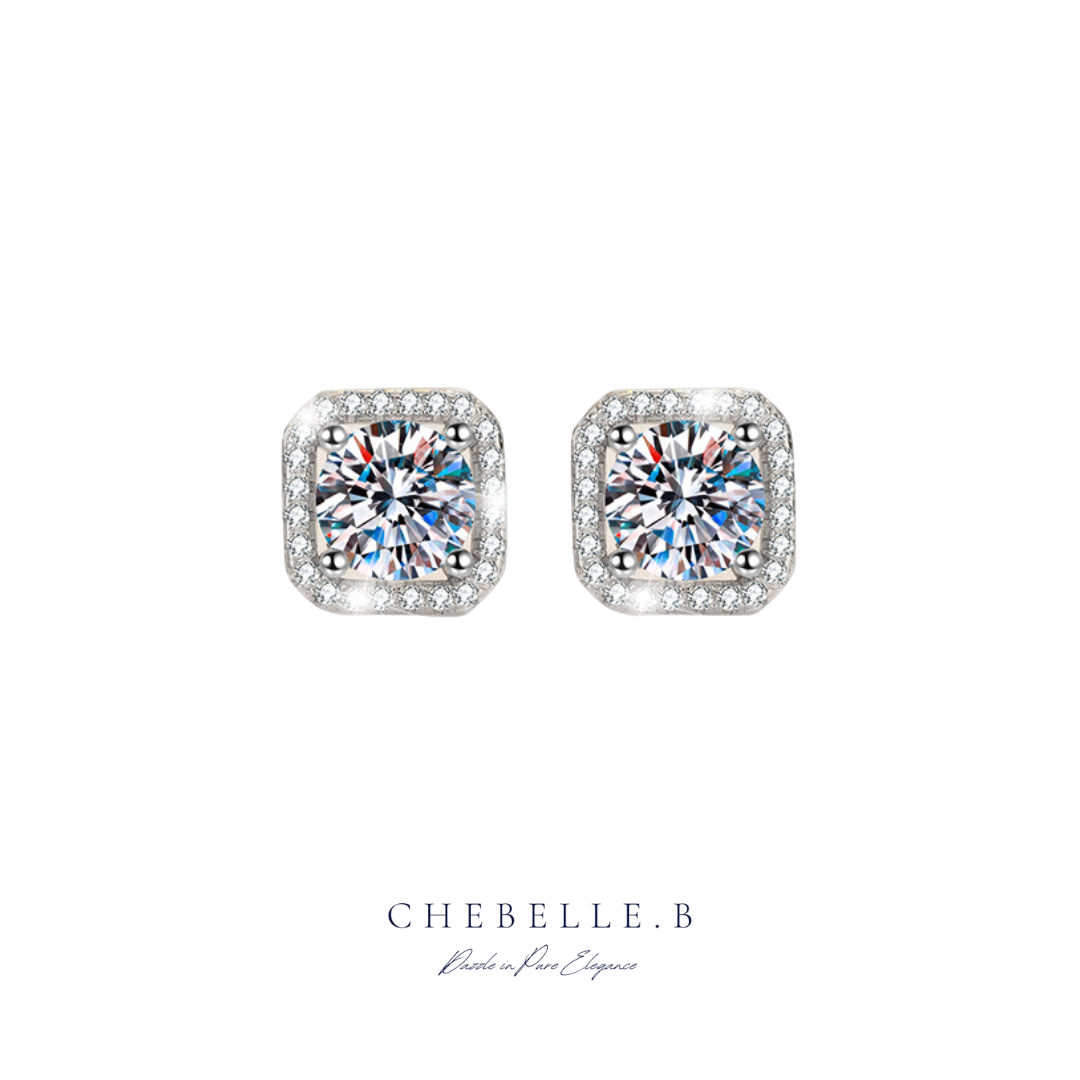 S925 Sterling Silver 1-Carat Moissanite Square Halo Earring