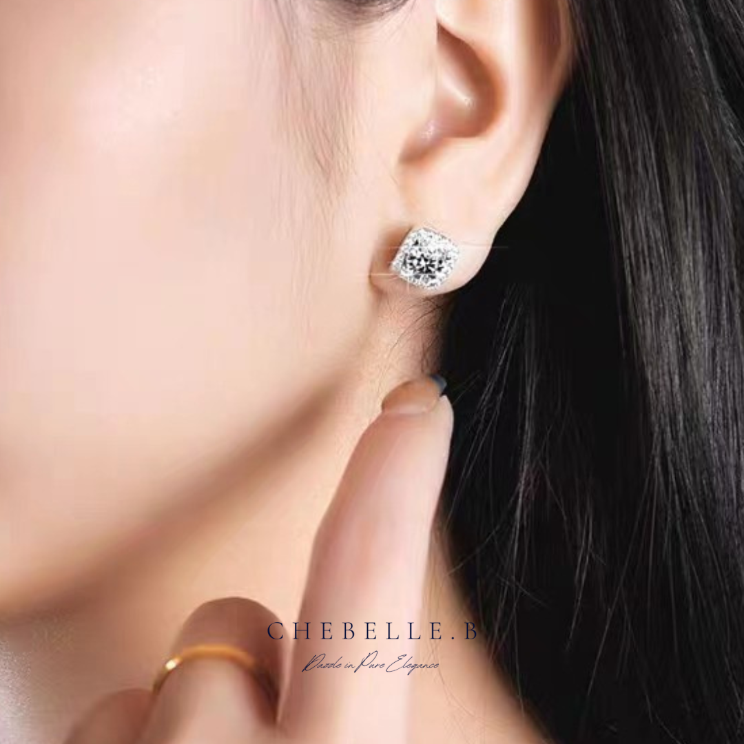 The modern square design, paired with the brilliance of Moissanite, adds a touch of sophistication and luxury, making them the perfect accessory for any occasion. Whether for everyday elegance or a special celebration, these earrings are a refined statement of beauty and grace.