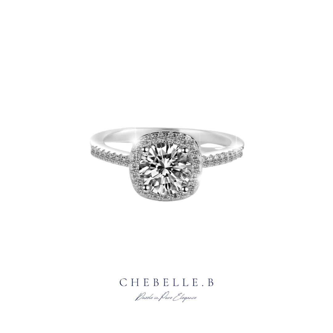 S925 Sterling Silver 1-Carat Moissanite Square Halo Ring