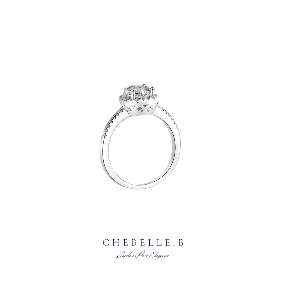 The radiant Moissanite centerpiece, surrounded by a halo of smaller stones, creates a captivating sparkle that rivals traditional diamonds. Perfect for engagements, anniversaries, or any special occasion, this ring offers an exquisite statement of sophistication and grace.