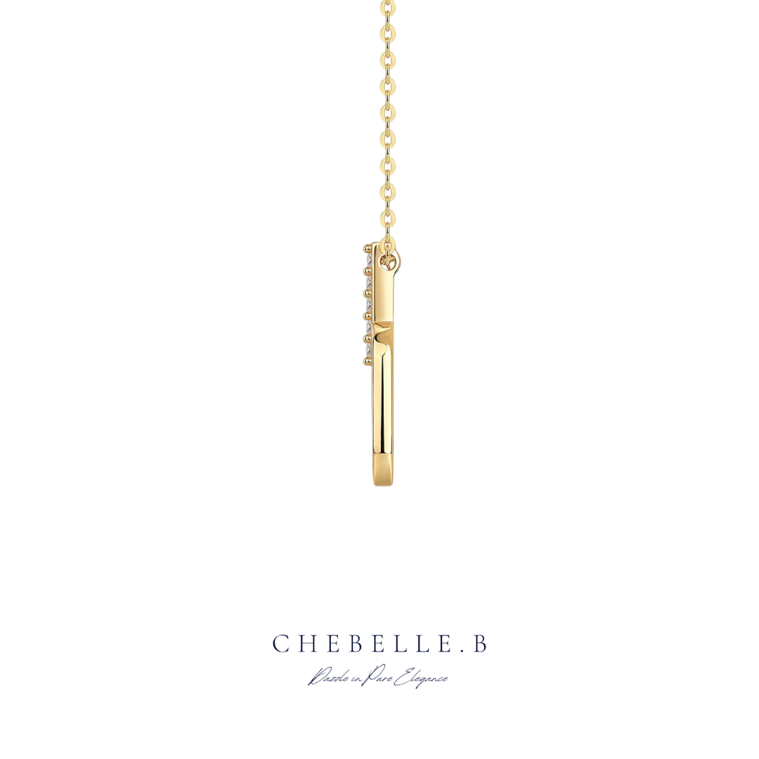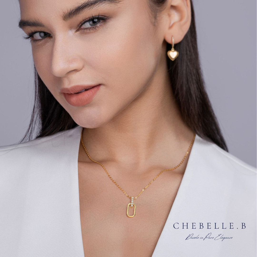 The Geometric Moissanite Pendant Necklace combines the contemporary allure of S925 sterling silver with the warmth of 18K gold plating. The pendant features a geometric design that highlights a brilliant Moissanite stone, known for its exceptional brilliance and fire.