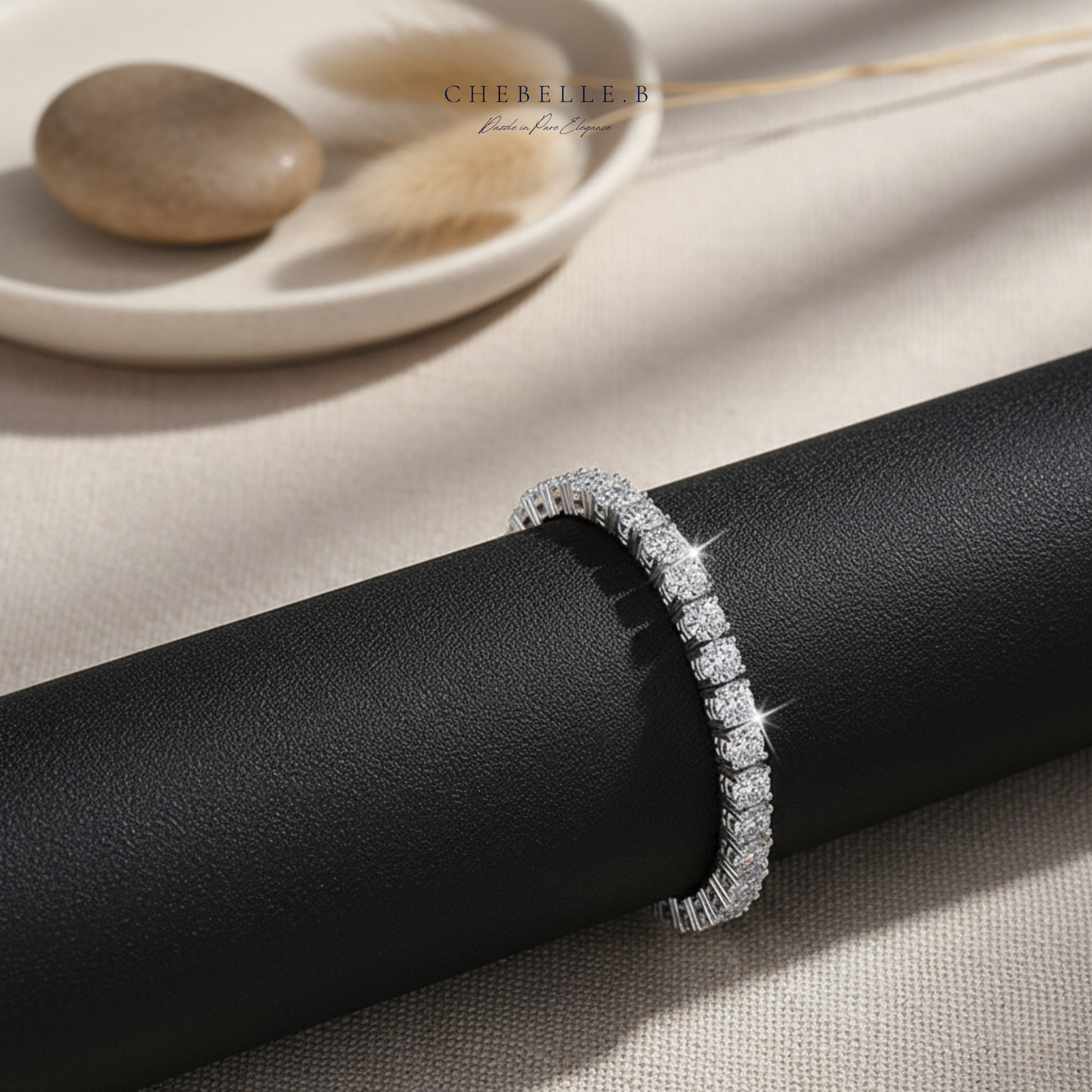 The Moissanite Eternity Pave Bracelet features beautiful Moissanite stones set in a stunning full pave design. The bracelet, crafted in S925 sterling silver, is designed to wrap the wrist in continuous brilliance, with each Moissanite stone expertly placed to maximize its sparkle and shine.