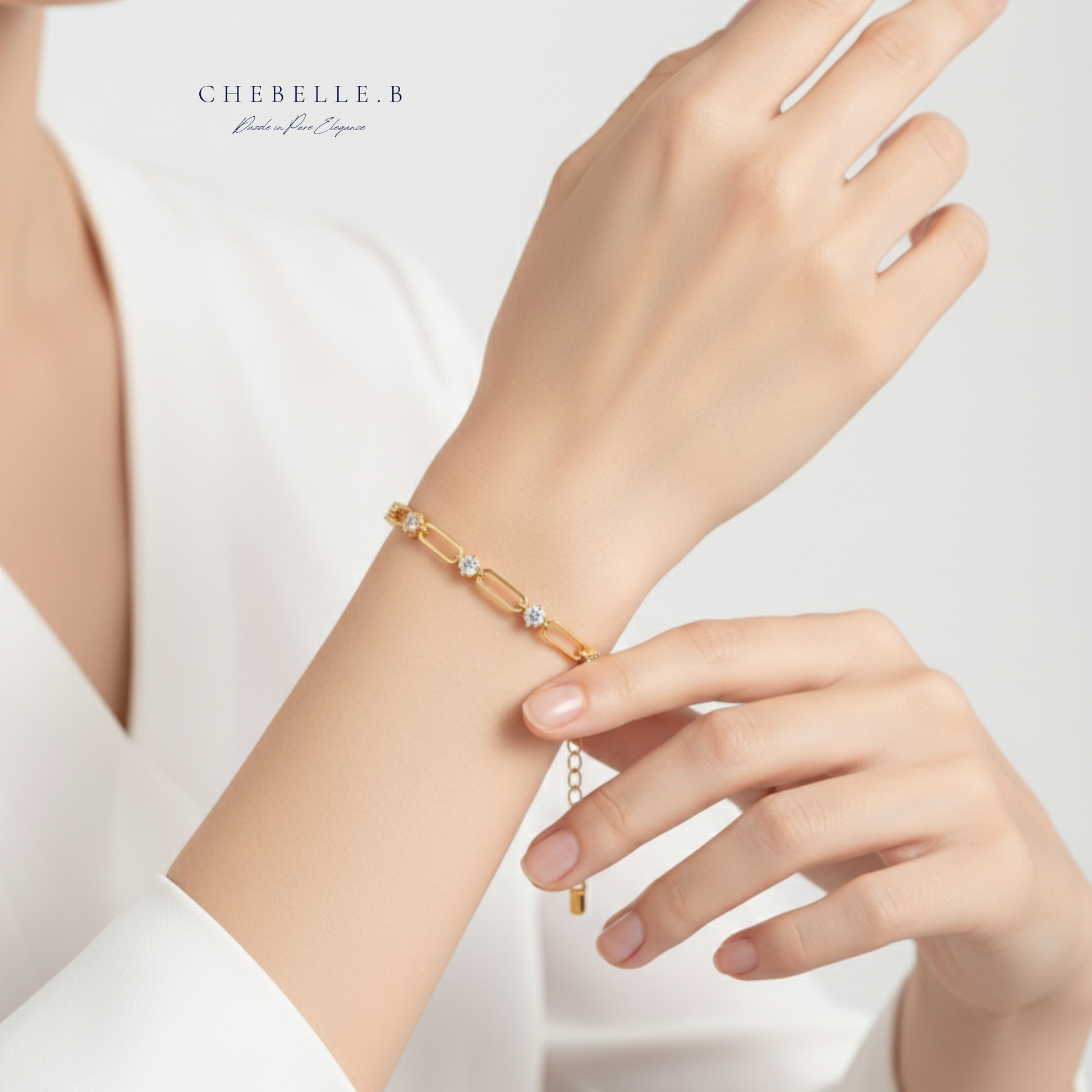 This exquisite bracelet features 10 sparkling 0.5-carat Moissanite stones, set in18K Gold Plated S925 Sterling Silver to create a stunning stars blooming effect. The Moissanite stones, known for their exceptional brilliance and fire, are delicately arranged to evoke the beauty of stars blooming in the night sky, each stone gleaming with radiant light.
