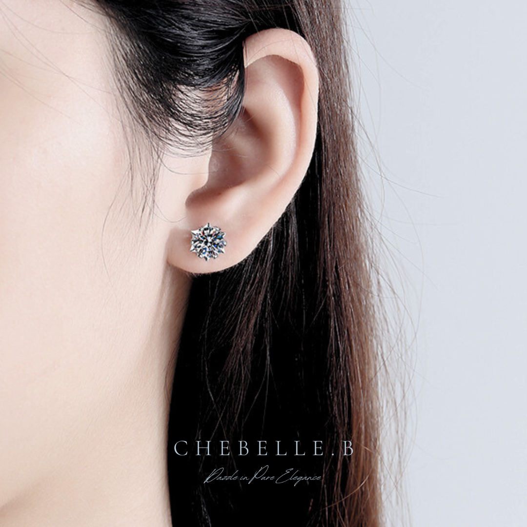 These enchanting stud earrings feature a beautiful 1-carat heart-shaped Moissanite gemstone, set in S925 sterling silver with a delicate snowflake-inspired design. The Moissanite stones, known for their brilliant sparkle and diamond-like fire, are arranged in a heart shape that radiates elegance and love.