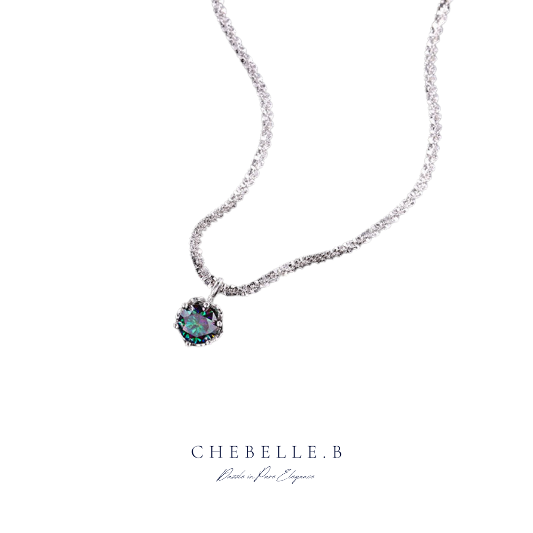 This elegant necklace features a stunning 1-carat blue-green Moissanite gemstone, set in S925 sterling silver for a sleek, polished finish. The unique blue-green hue of the Moissanite stone is complemented by the luxurious sterling silver setting, creating a sophisticated and timeless design.