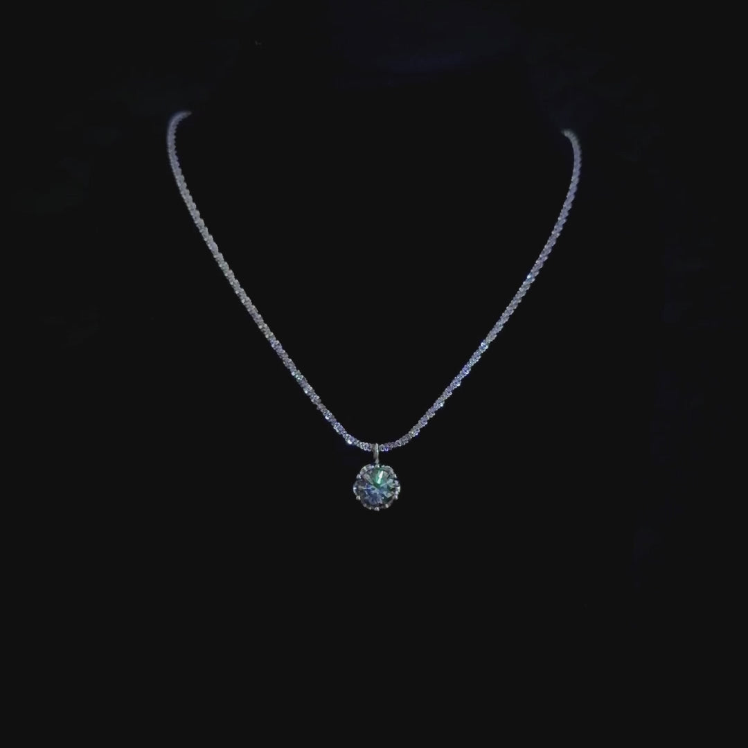 S925 Sterling Silver Luxe 1-Carat Blue-Green Moissanite Necklace